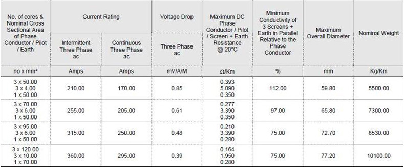 英国AEI矿用电缆 307S电缆参数表